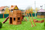 Крепость Застава – идеальный выбор для нескольких детей! Здесь места хватит всем. Девочки выбирают качели, горку, домик, а мальчики обожают свой военный штаб, где они могут разрабатывать операции и планы.