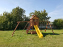 Городок отлично подойдет как для малышей, так и для детей постарше. Малыши могут поиграть в удобной песочнице. Для удобства обустроена лавочка, а для безопасности есть небольшой заборчик, который блокирует случайный выход ребенка из зоны песочницы в сторону качельной балки.