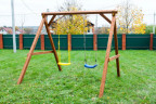 Малыши могут поиграть в безопасной бесочнице. Специальное ограждение защищит от случайного выхода ребенка в зону качельной балки.