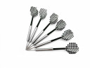 Набор дротиков для дартса DAR3324, состоящий из 6-ти дротиков с чёрно-белым узорчатым флайтом и металлическим держателем. Каждый дротик имеет вес 24,5 грамм, что делает их подходящими для использования опытными или профессиональными игроками. Толщина хвата (баррель) составляет 9 мм.