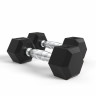 Гантель обрезиненная с хромированной ручкой. Вес гантели 15 кг, в комплекте 2 штуки (пара). Ручка с насечками для предотвращения скольжения. Гексагональная гантель – обрезиненная модель удобной конструкции. Гантель имеет много граней и не катается по полу. Обрезиненная поверхность не царапает пол при ударе. Гантели используются в фитнесе, лечебной физкультуре, бодибилдинге и других спортивных тренировках. Внутренний материал сталь Внешний материал резина Материал хвата сталь Длина хвата 12,5 см  Диаметр хвата 2,8 см  Вес гантели (1 шт) 15 кг  Размер упаковки (2 шт / комплект)   Объем упаковки          Вес брутто   Бренд  DFC  Страна производства  Китай  Гарантия  12 месяцев
