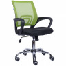 Современное кресло для персонала, с сетчатой спинкой, хромированной крестовиной и механизмом качания.