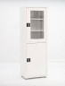 Петли дверки цельнометаллические четырёхшарнирные фиксирующие. Шкаф имеет два отделения: нижнее с полкой и дверкой, открытое верхнее с двумя полками. Установлен на пластиковые подпятники.