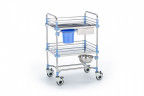 - Стальной каркас тележки быстро разбирается, соединения обеспечивают жёсткость конструкции в собранном виде. Покрытие соответствует всем санитарно-гигиеническим нормам, оно долговечно и без проблем дезинфицируется любыми средствами.